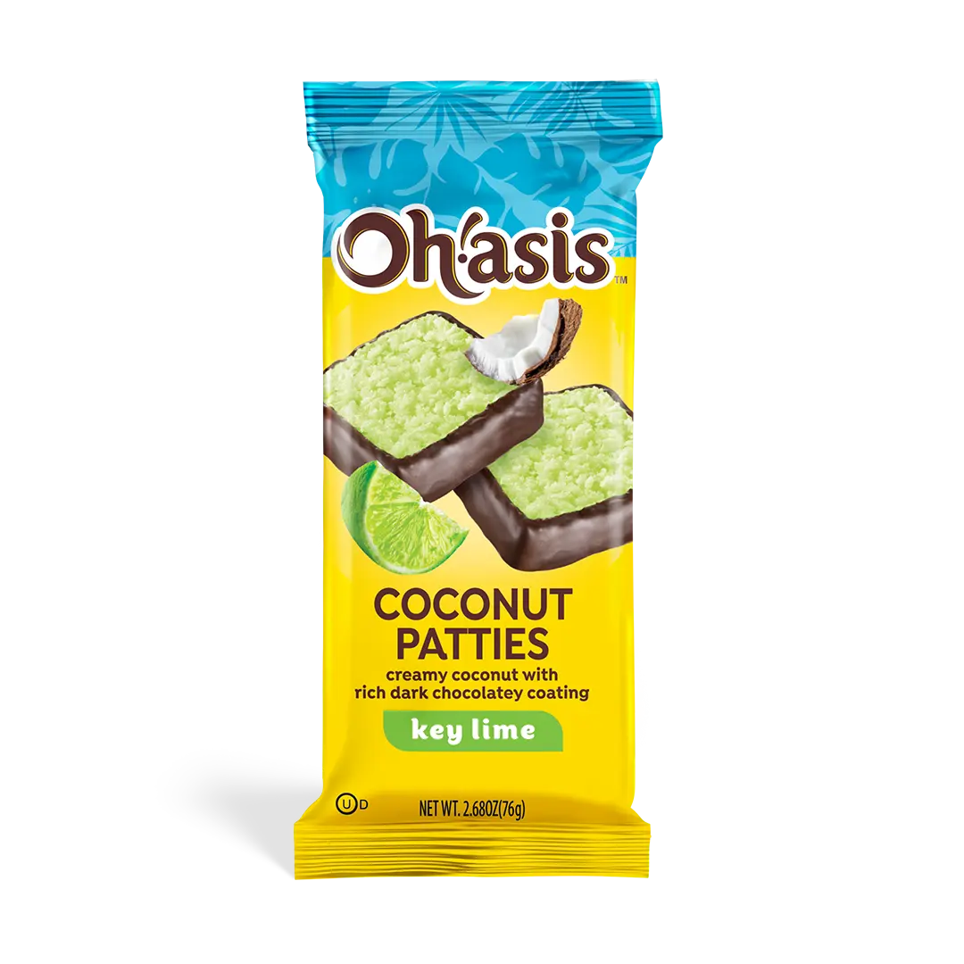Treat yourself to the vibrant flavors of the tropics with our Key Lime Coconut Patties. Each 2-piece pack combines creamy shredded coconut with a hint of real key lime oil, then dipped in a rich, dark chocolatey coating. Packaged in a colorful 12-count box, these 2-piece wrapped treats offer the perfect balance of tart and sweet.