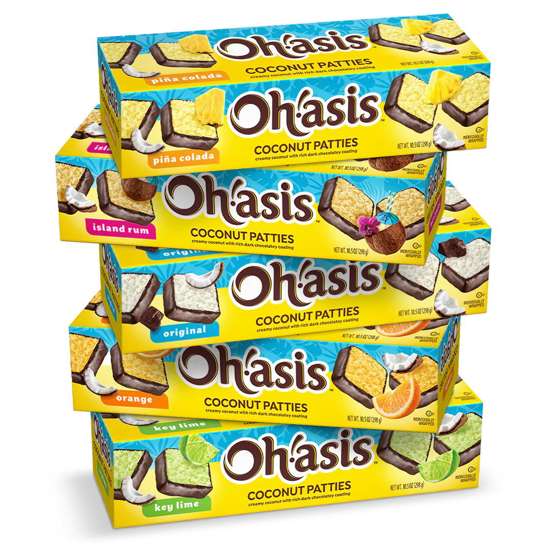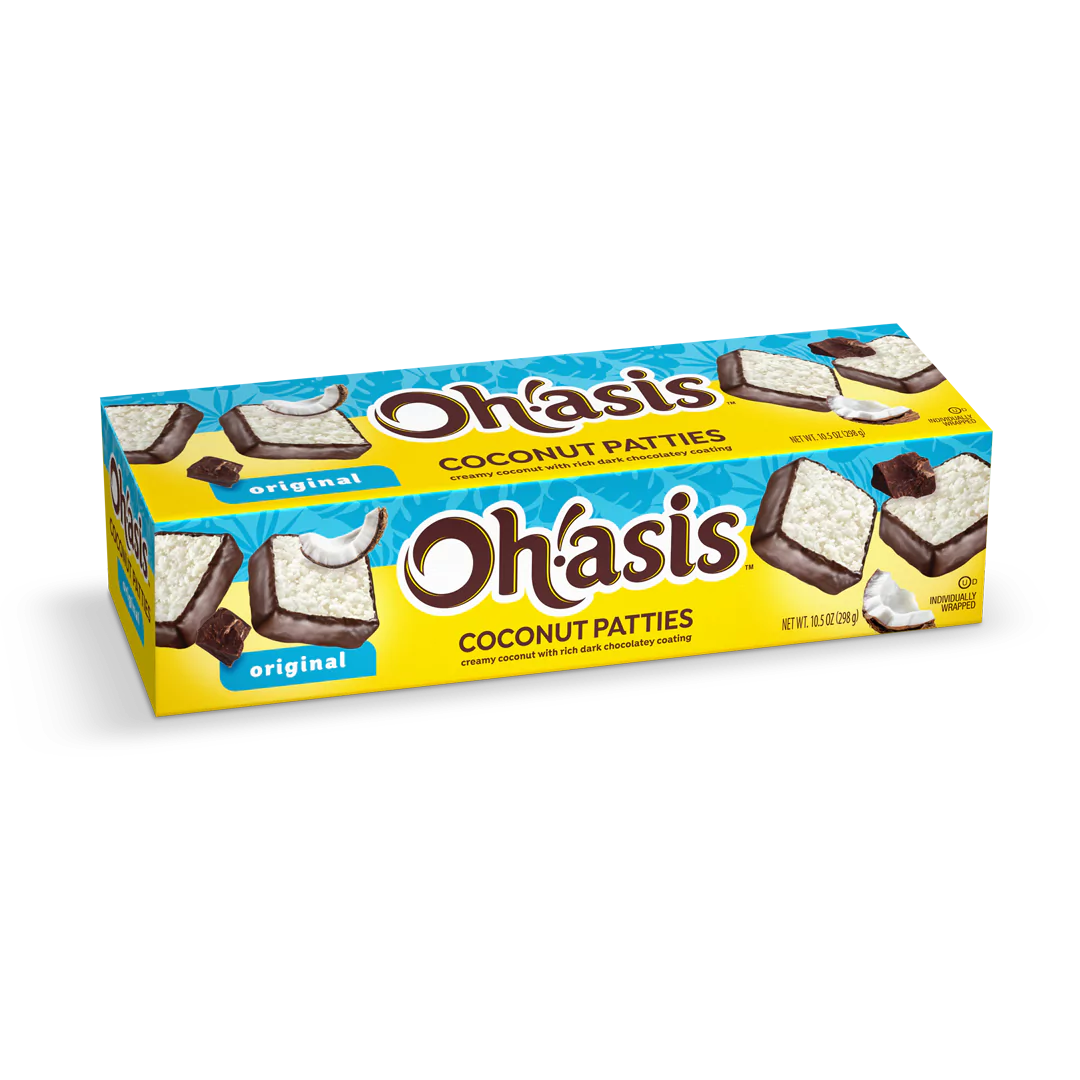 There’s a good reason that our Original Coconut Patties are a fan favorite! Each patty is crafted with creamy shredded coconut dipped in a rich, dark chocolatey coating. Packaged in a colorful 10.5 oz. box, these delicious tropical treats are individually wrapped to maintain freshness and make them perfect for sharing or enjoying on the go.