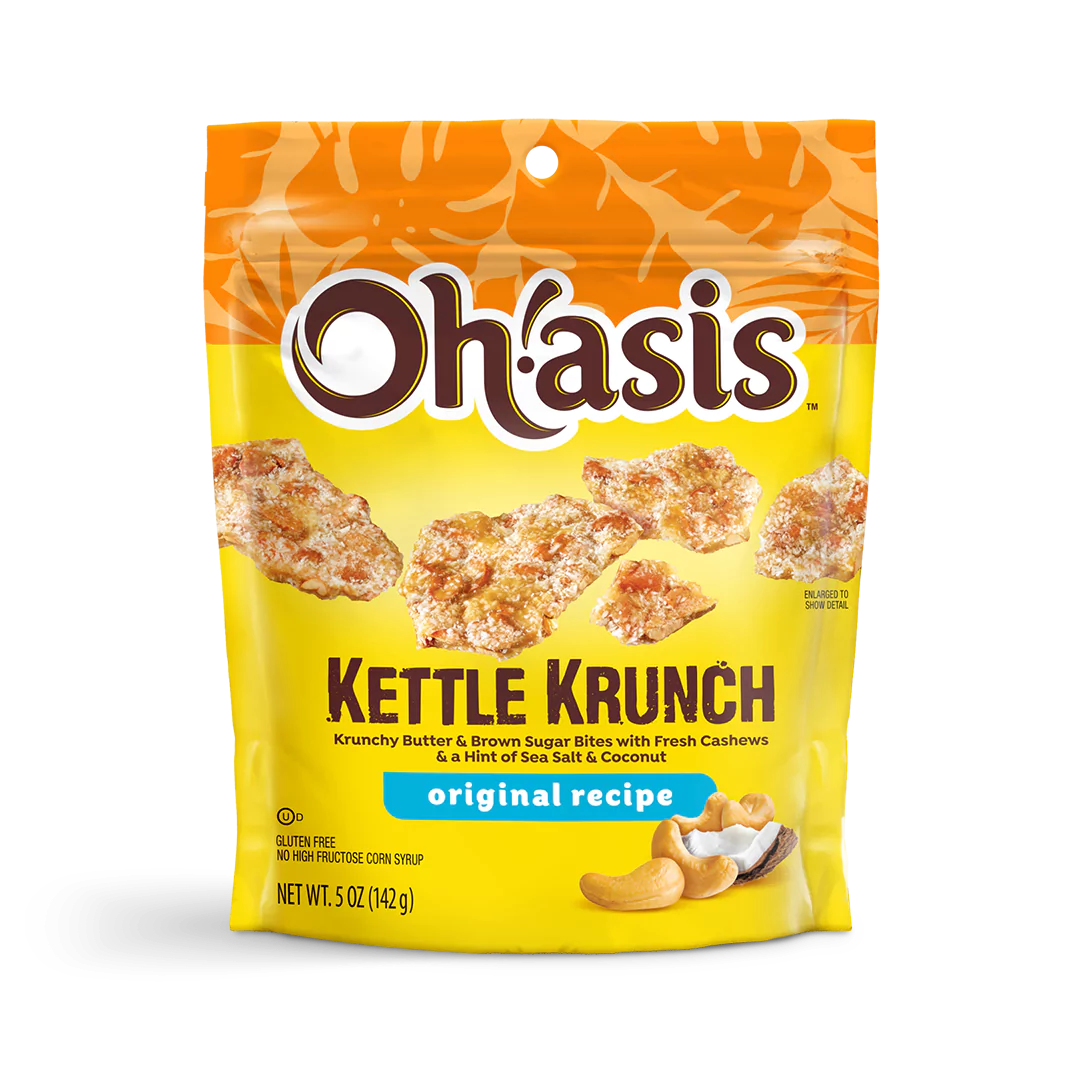 This tropical twist on a classic treat brings the taste of sandy beaches and swaying palms in every bite. The Original Recipe combines cashews, butter, brown sugar, a hint of sea salt, coconut, and island breezes, creating irresistible, crunchy, and buttery bites. Handmade in copper kettles for the perfect blend of flavors, packaged in a convenient, resealable 5oz pouch, it's the perfect snack for any time indulgence.