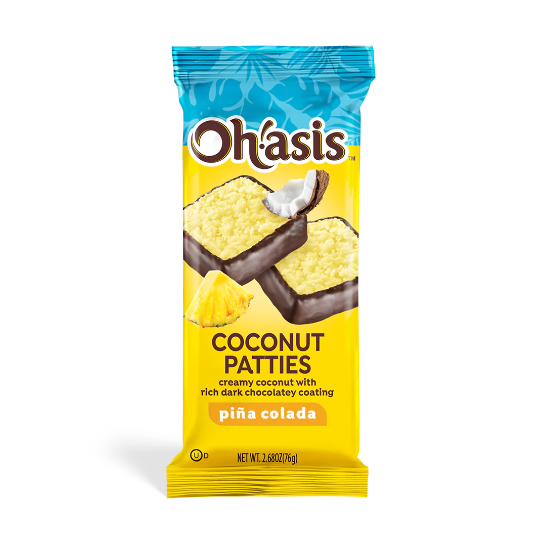 Transport yourself to a tropical getaway with our Piña Colada Coconut Patties. Each 2-piece pack blends creamy shredded coconut with a splash of pineapple flavor, then dipped in a rich, dark chocolatey coating. Packaged in a colorful 12-count box, these 2-piece wrapped treats offer a taste of paradise with every bite.