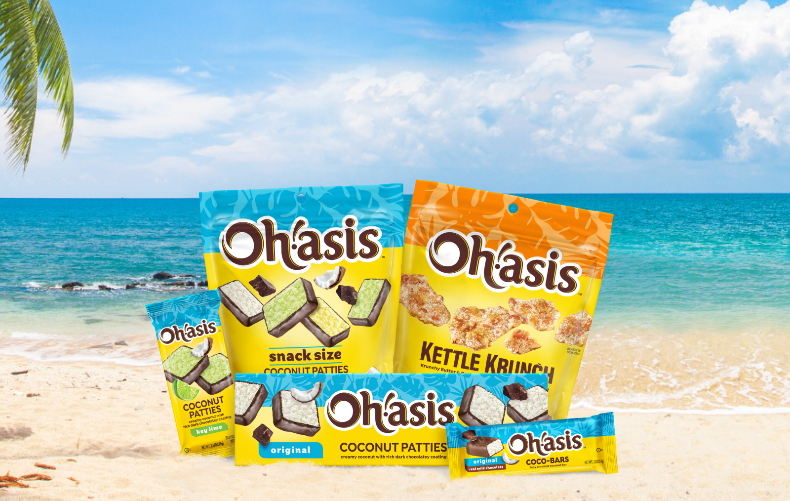 Anastasia® and Coconut Island® are now Oh!asis™, the same delicious everyday tropical indulgences shoppers seek are now delivered with greater attention-getting and sales-driven support from Las Olas Confections and Snacks.