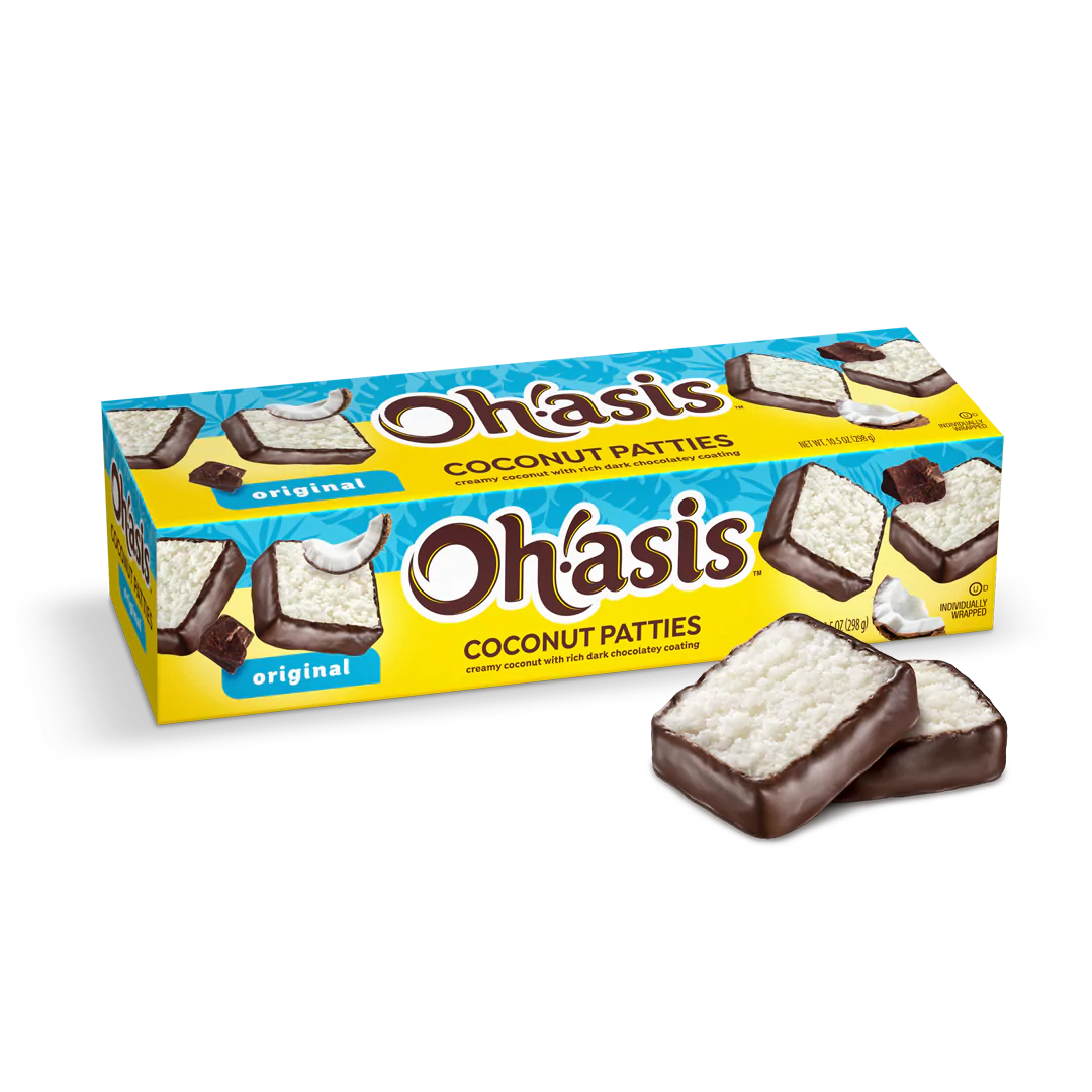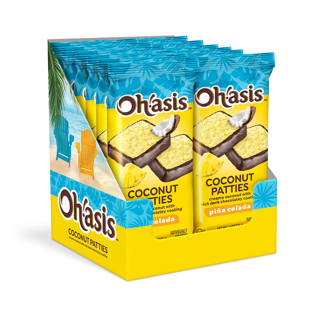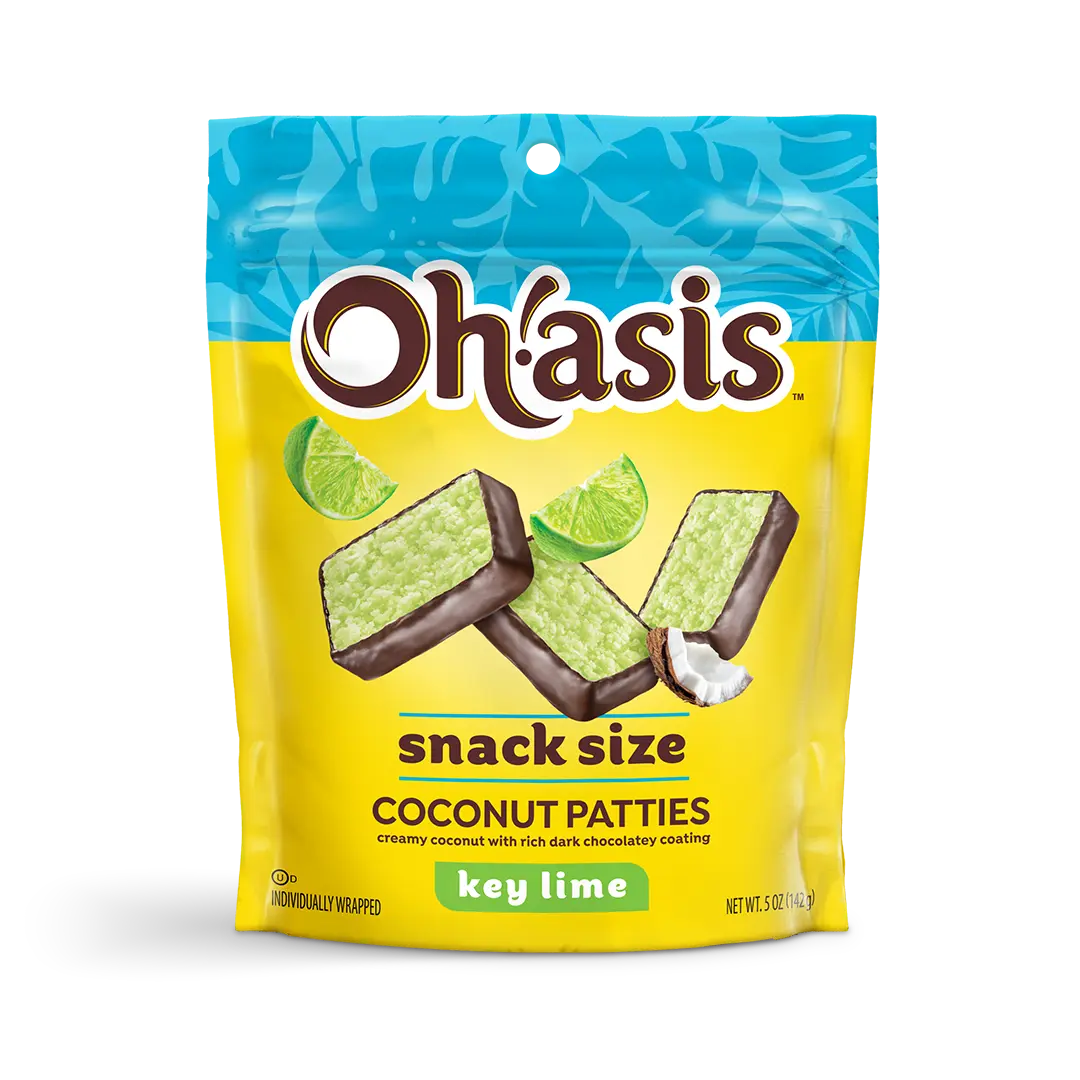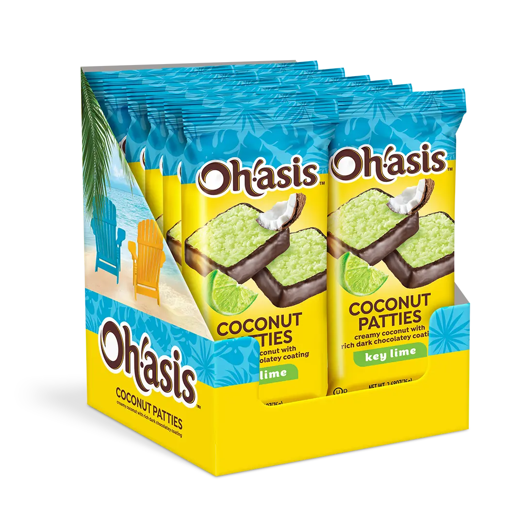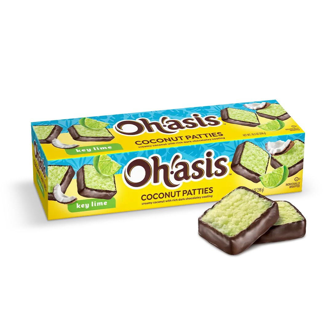 Escape to paradise with our Key Lime Coconut Patties! Each patty combines creamy shredded coconut with a hint of real key lime oil, then dipped in a rich, dark chocolatey coating. Packaged in a colorful 10.5 oz. box, these tropical treats are individually wrapped to preserve freshness and make them perfect for sharing or enjoying on the go.