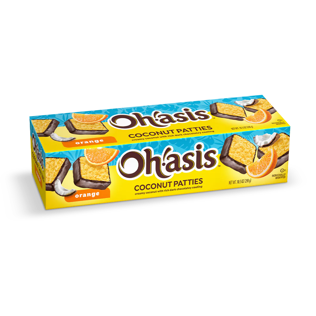 Brighten your day with our Orange Coconut Patties! Each treat features creamy shredded coconut infused with a burst of orange flavor, then dipped in a rich, dark chocolatey coating. Packaged in a colorful 10.5 oz. box, these tropical treats are individually wrapped to preserve freshness and make them perfect for sharing or enjoying on the go.