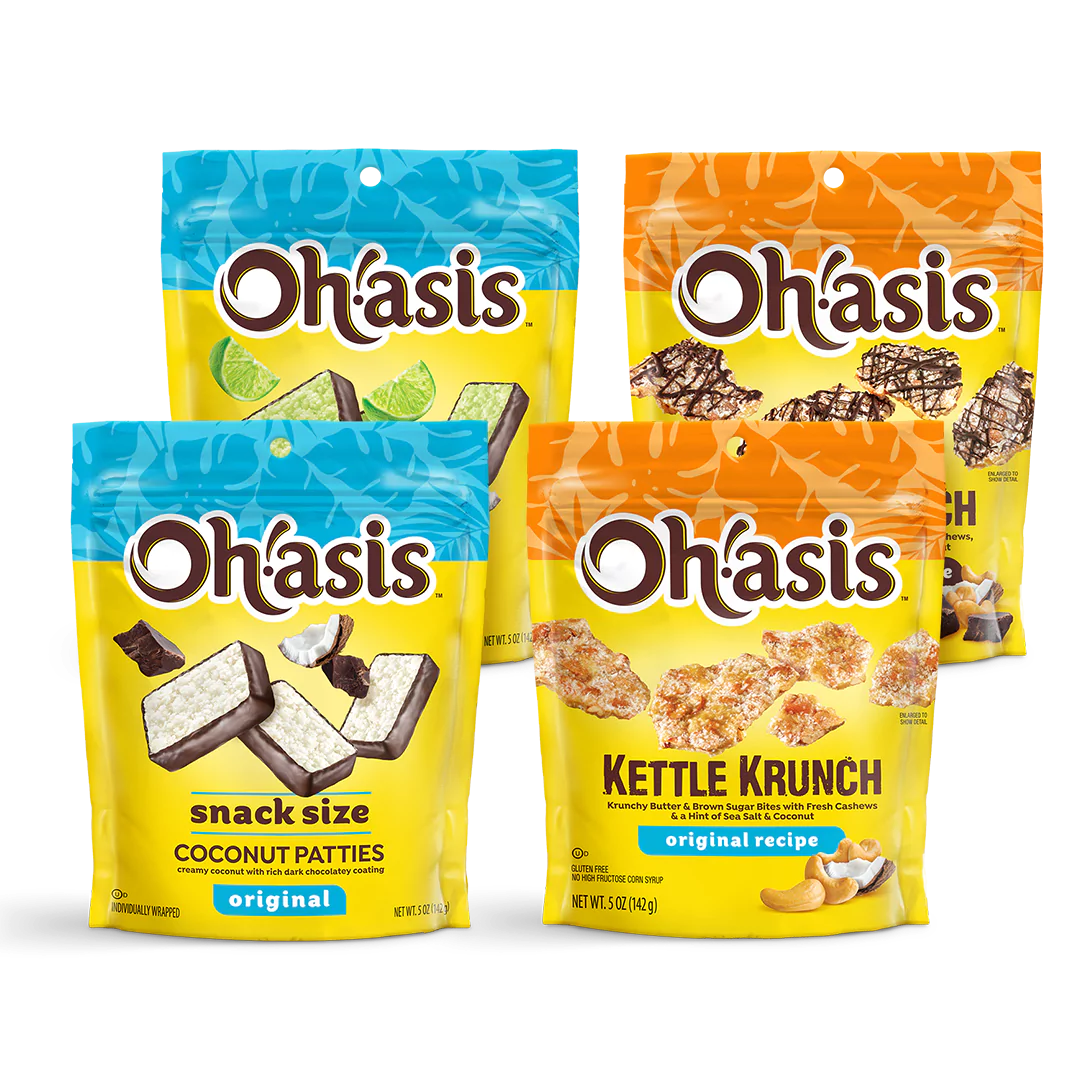 Escape to paradise with our Staycation Combo! This set includes one pouch each of our Snack Size Coconut Patties and one pouch each of our two Kettle Krunch flavors. Perfect for unwinding at home or on the go, this combo brings the island vibes straight to you.